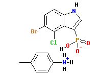 BCIP, p-Toluidine is commonly used in the colorimetric detection of Alkaline Phosphatase in conjunction with Nitro Blue Tetrazolium (NBT). The BCIP/NBT substrate system is also suitable for use in immunohistochemistry, immunoblot staining, and ELISA applications.